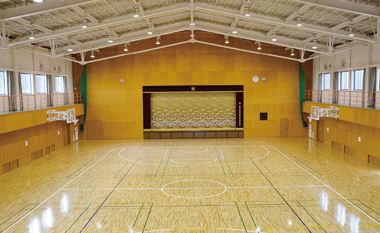 学生の希望を受けて建設された体育館。のびのびと運動ができる施設です。